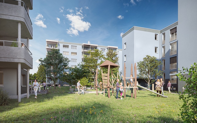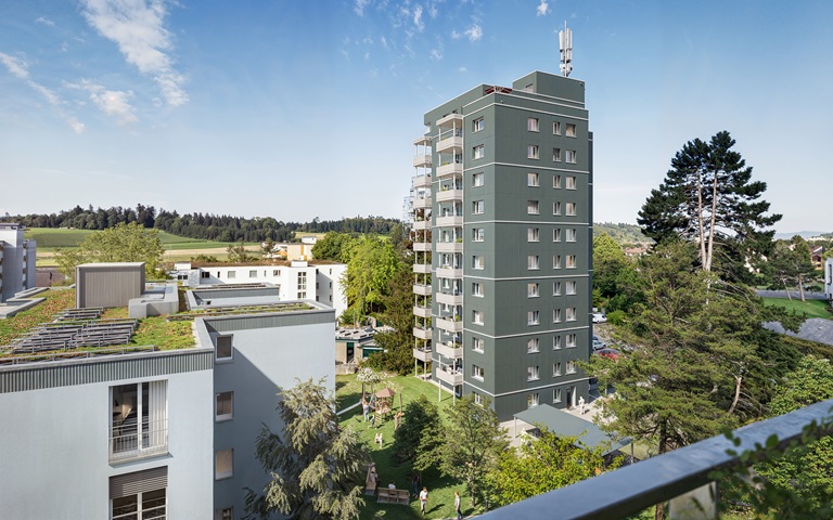 Gesamterneuerung Hochhaus und Erweiterung Riegelbau sowie Ersatzbau eines MFH mit insgesamt 79 Whg