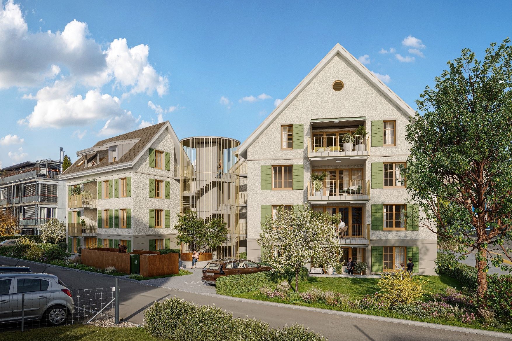 Neubau von 3 MFH mit insgesamt 24 Wohnungen Verkauf/Vermietung: www. raeuchi-saland.ch